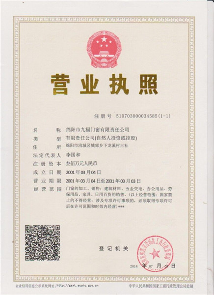 綿陽市九福門窗有限責任公司 免費熱線:400-8120-991 訂貨辦:0816-2681699 招商辦:13547137081(李副總) 銷售辦:13219993300(李經(jīng)理) 綜合辦:15008197116(向女士) 生產(chǎn)辦:18381604209(蹇主任) 發(fā)貨辦:18281947680(張先生) 服務部:18113712617(李部長) 質(zhì)監(jiān)部:13548418426(李先生)